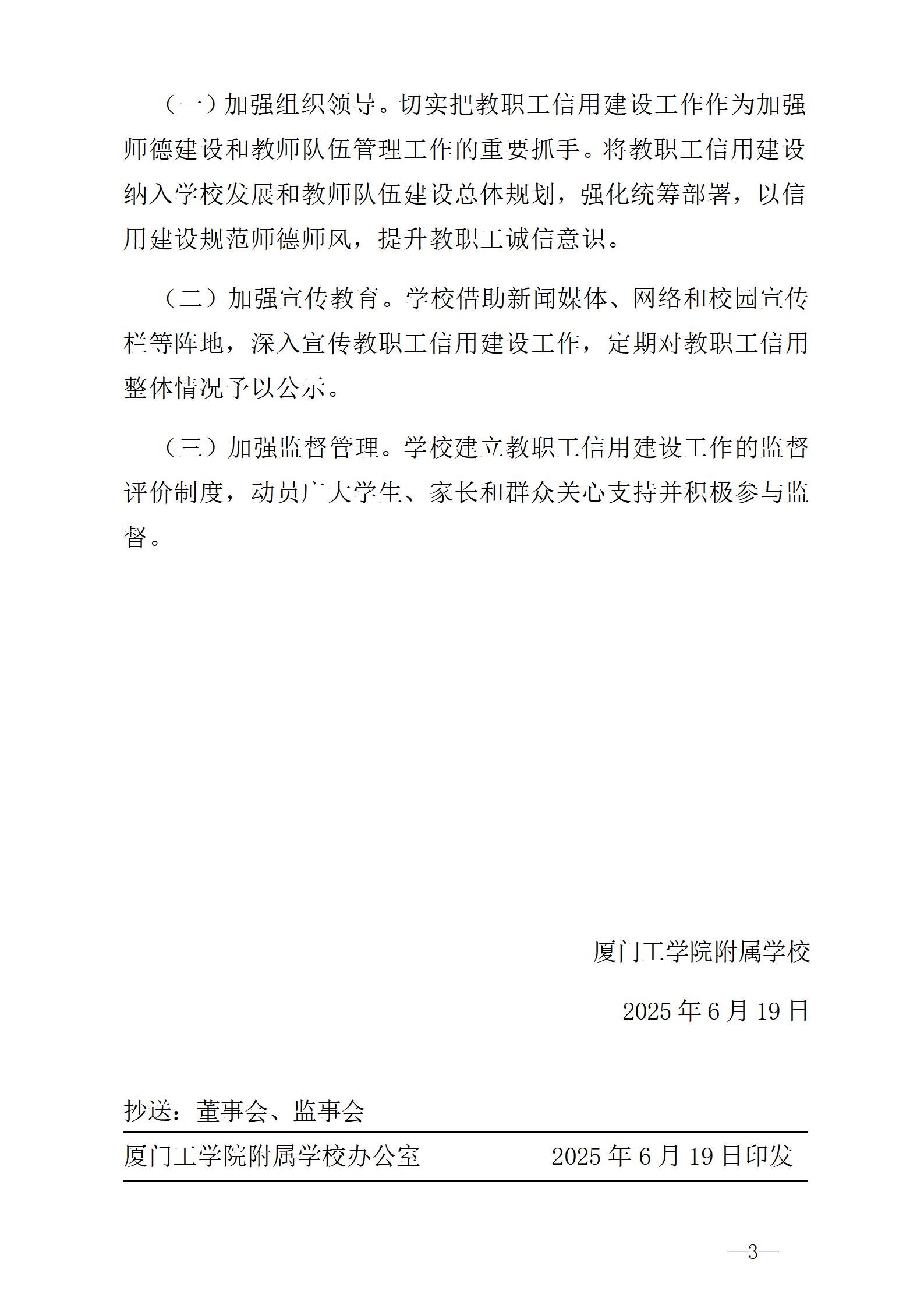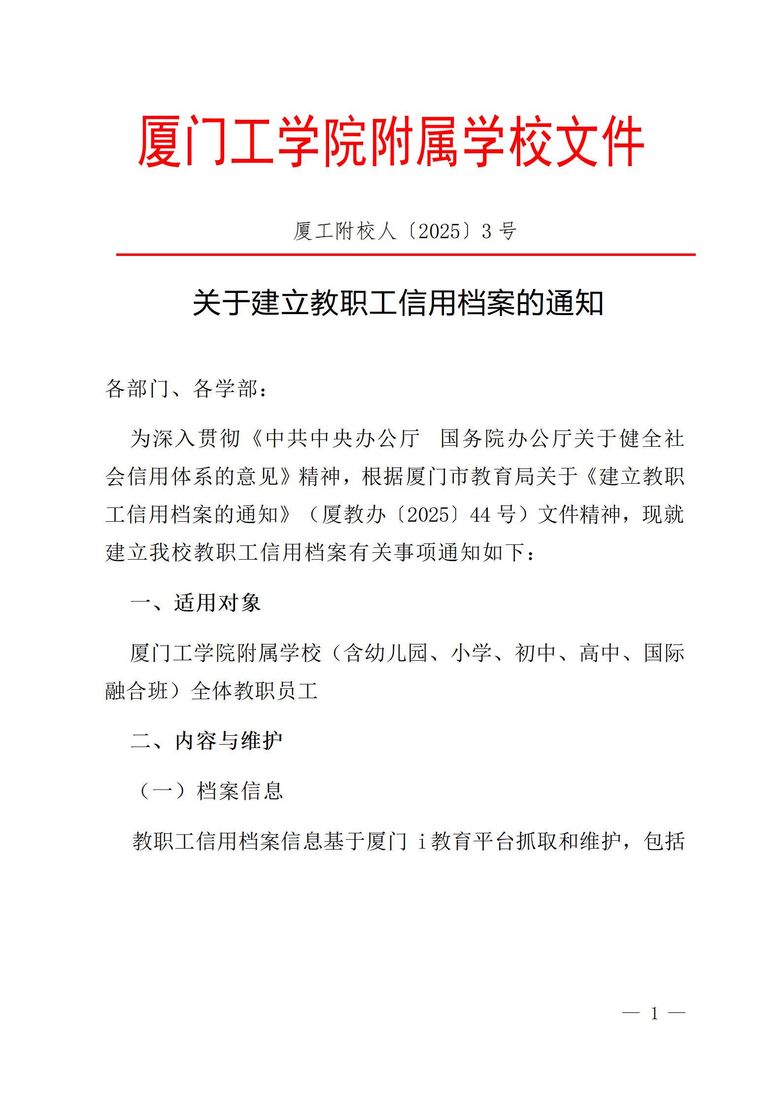 厦工附校人〔2025〕3号 关于建立教职工信用档案的通知