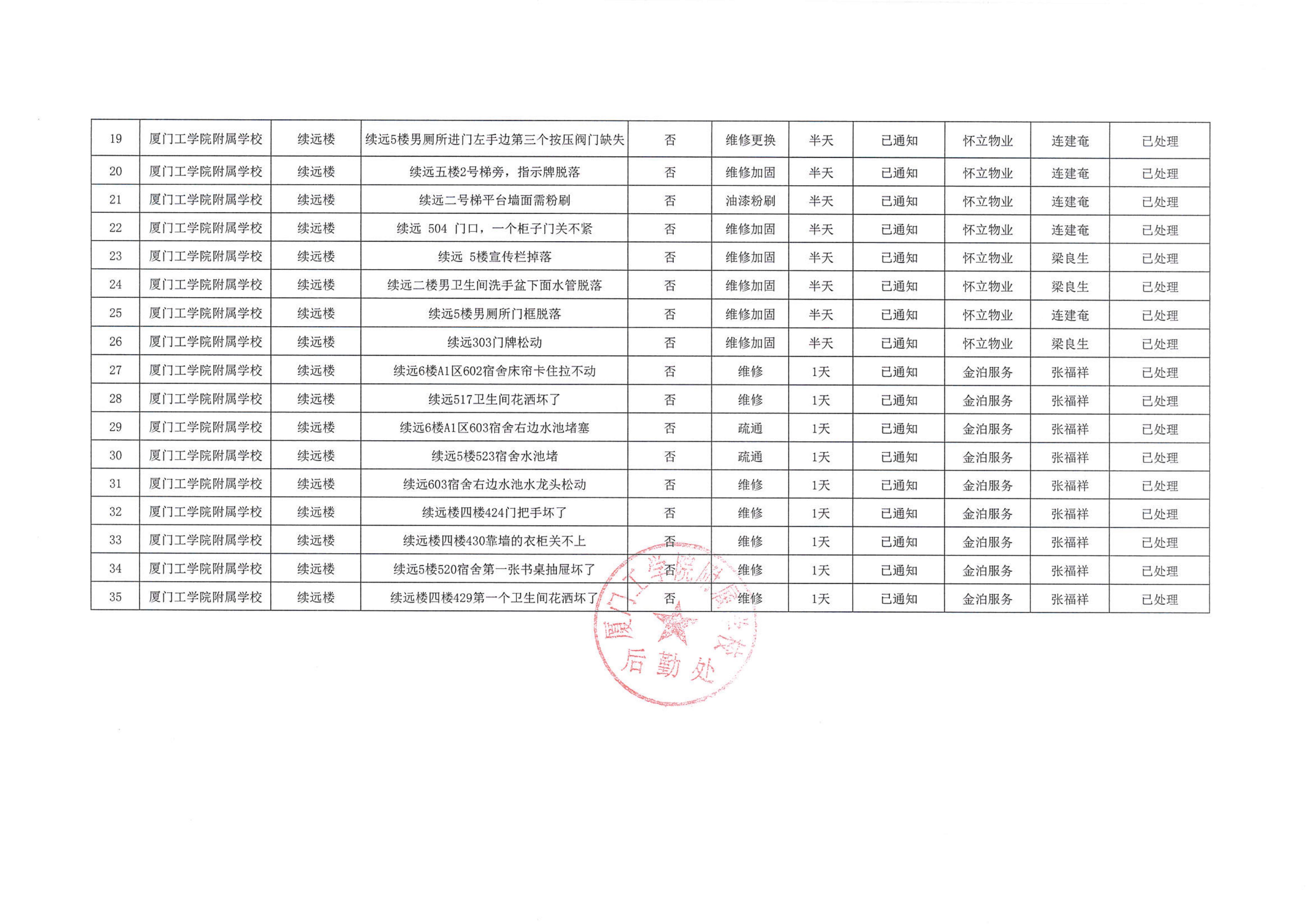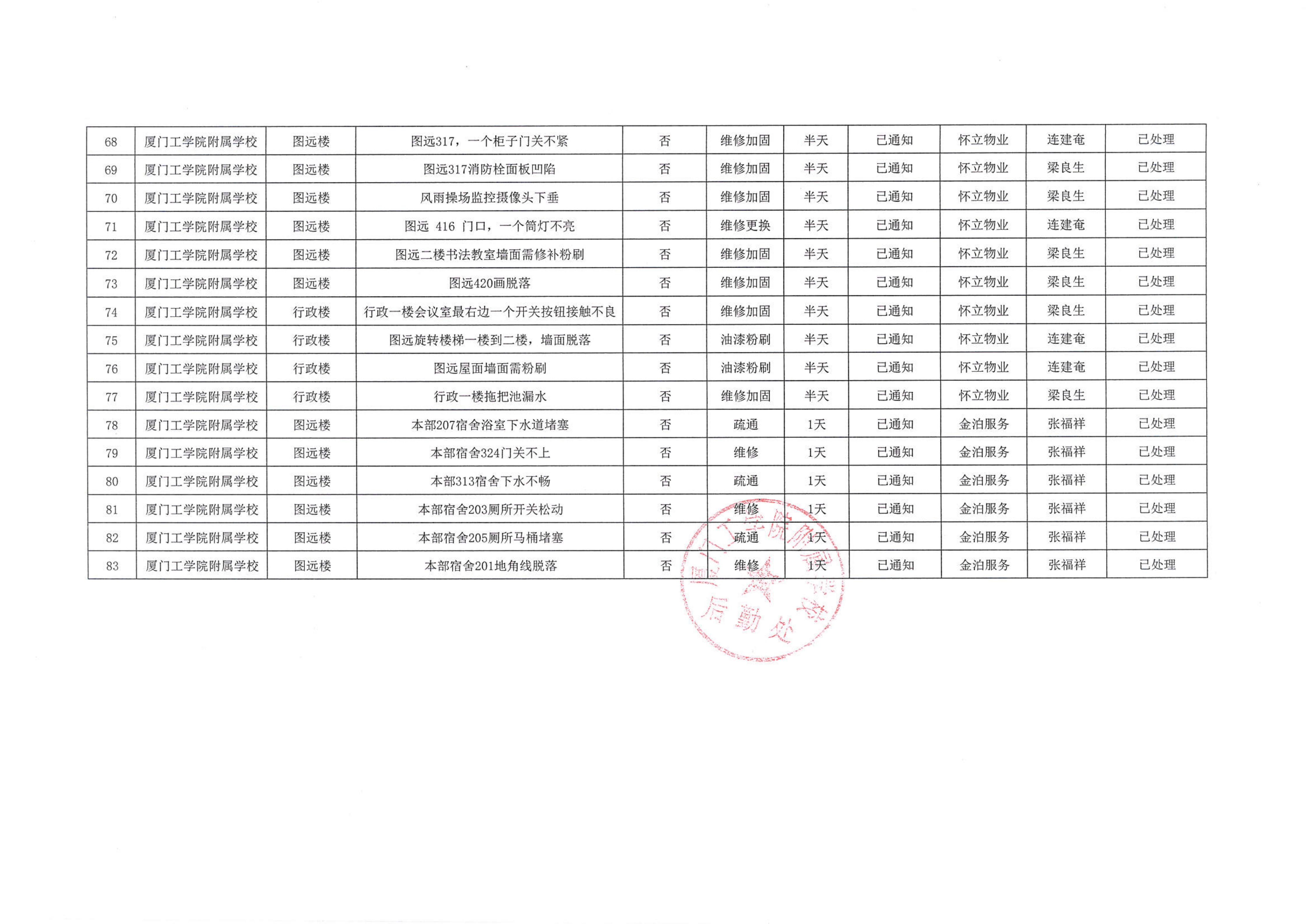 厦门工学院附属学校2025年8月份安全隐患大排查大整治隐患清单…