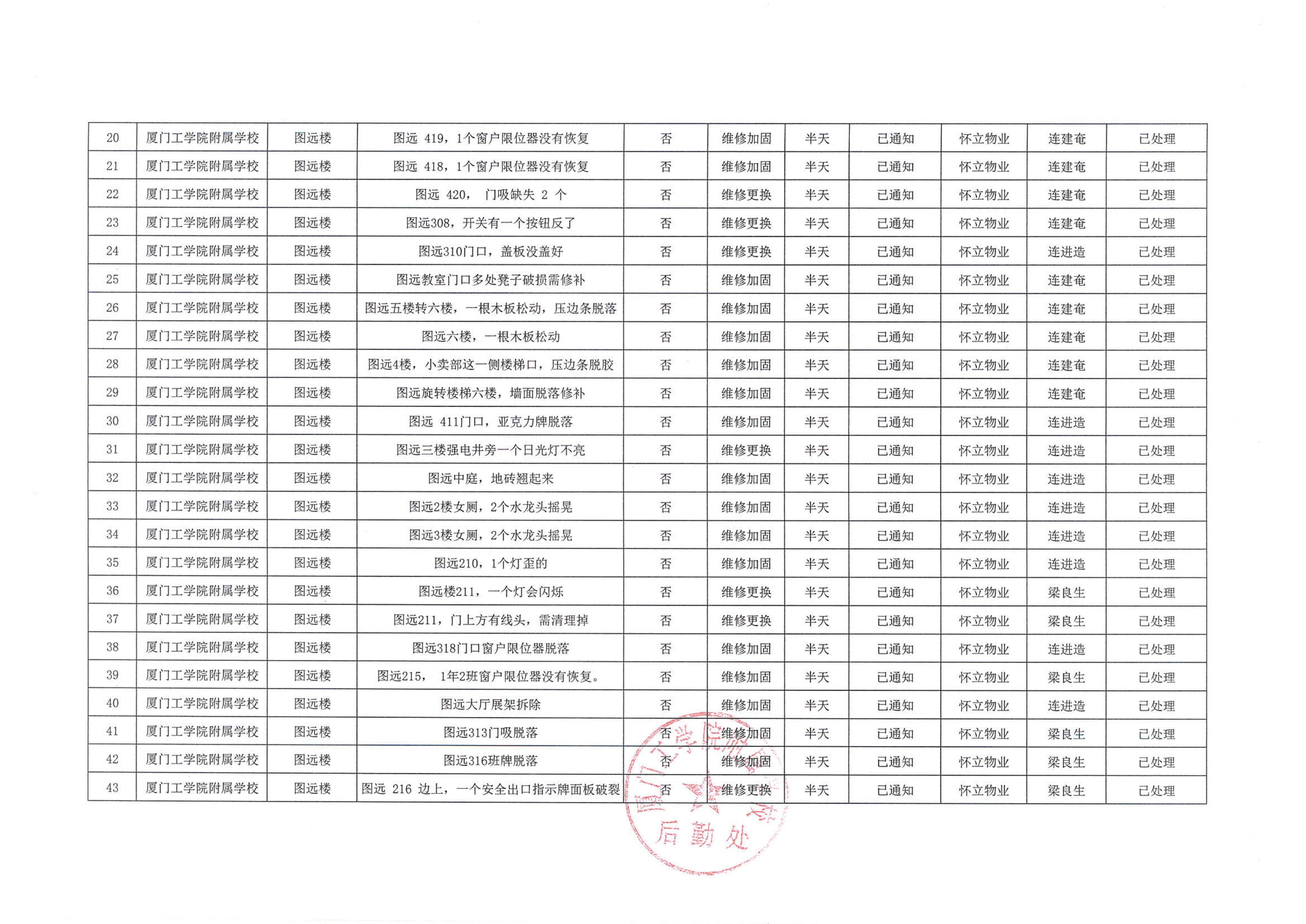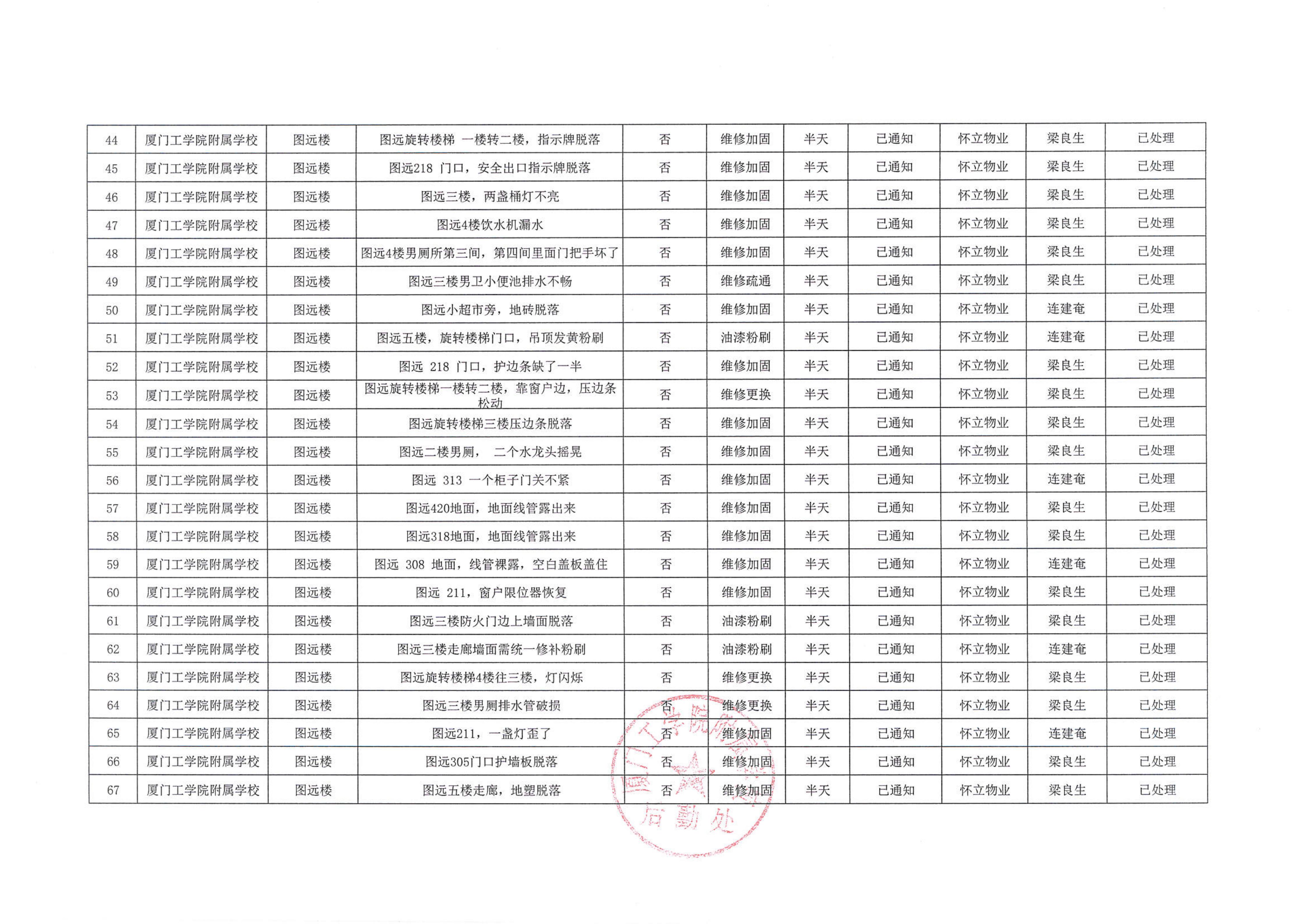 厦门工学院附属学校2025年10月份安全隐患大排查大整治隐患清单…