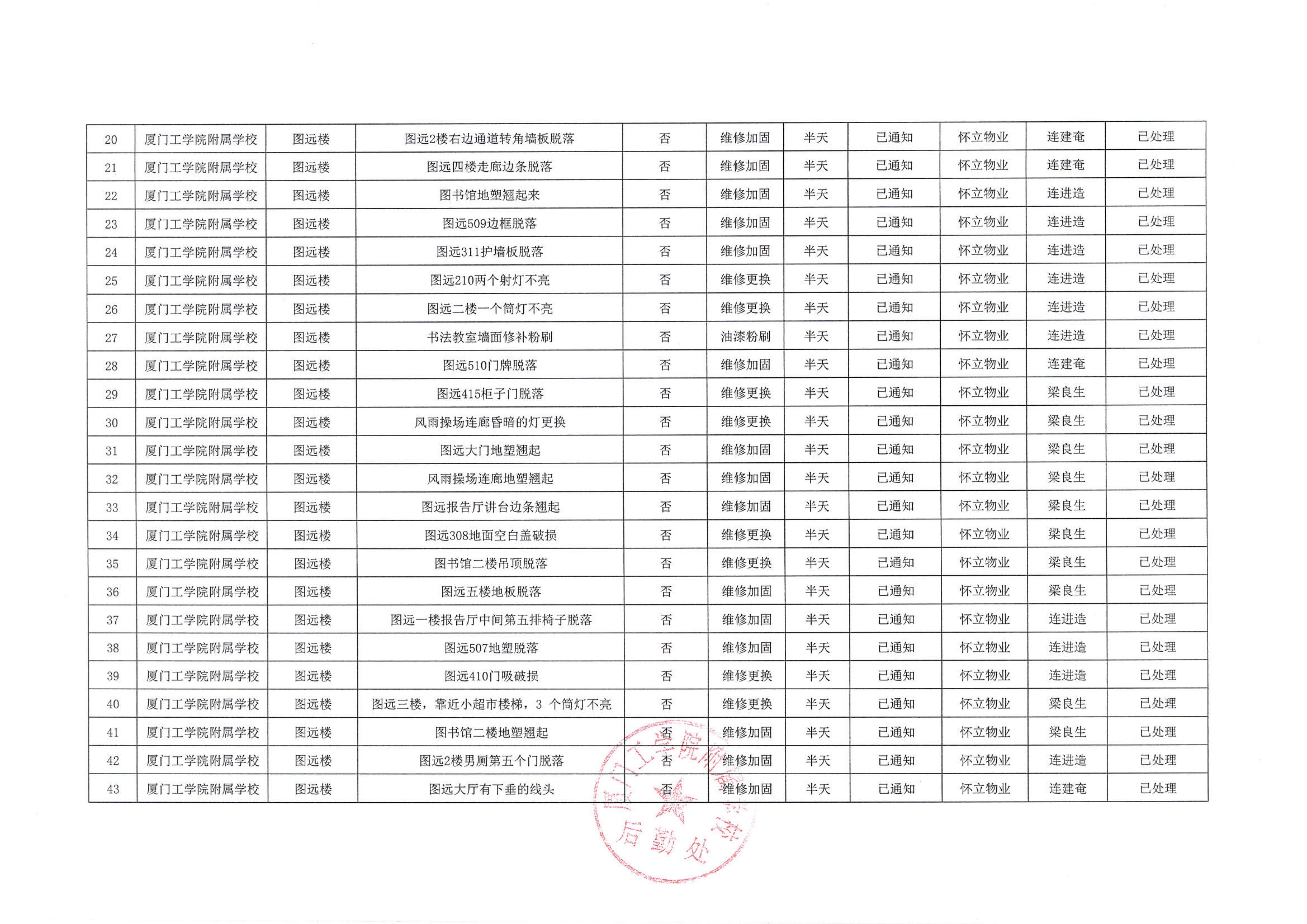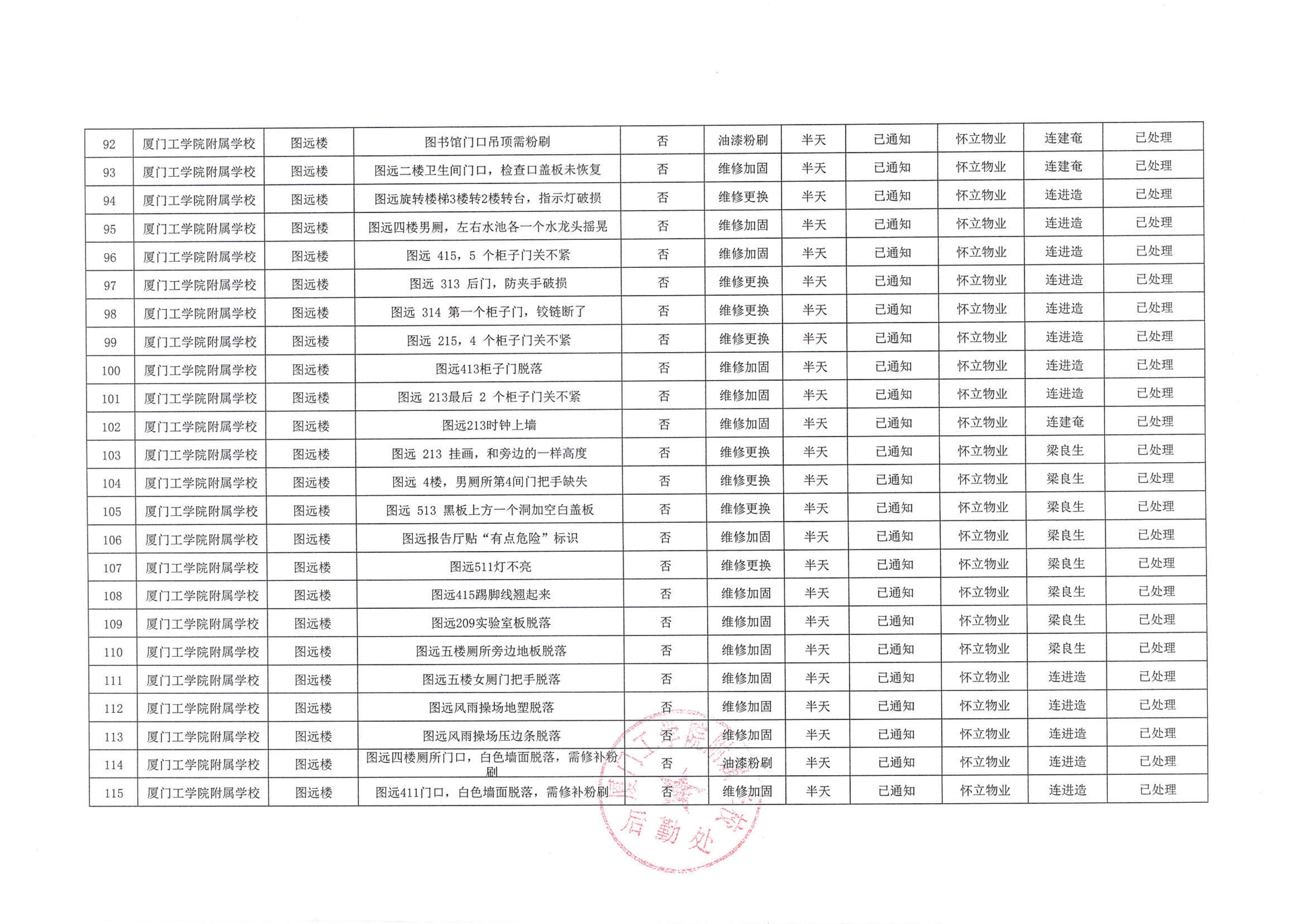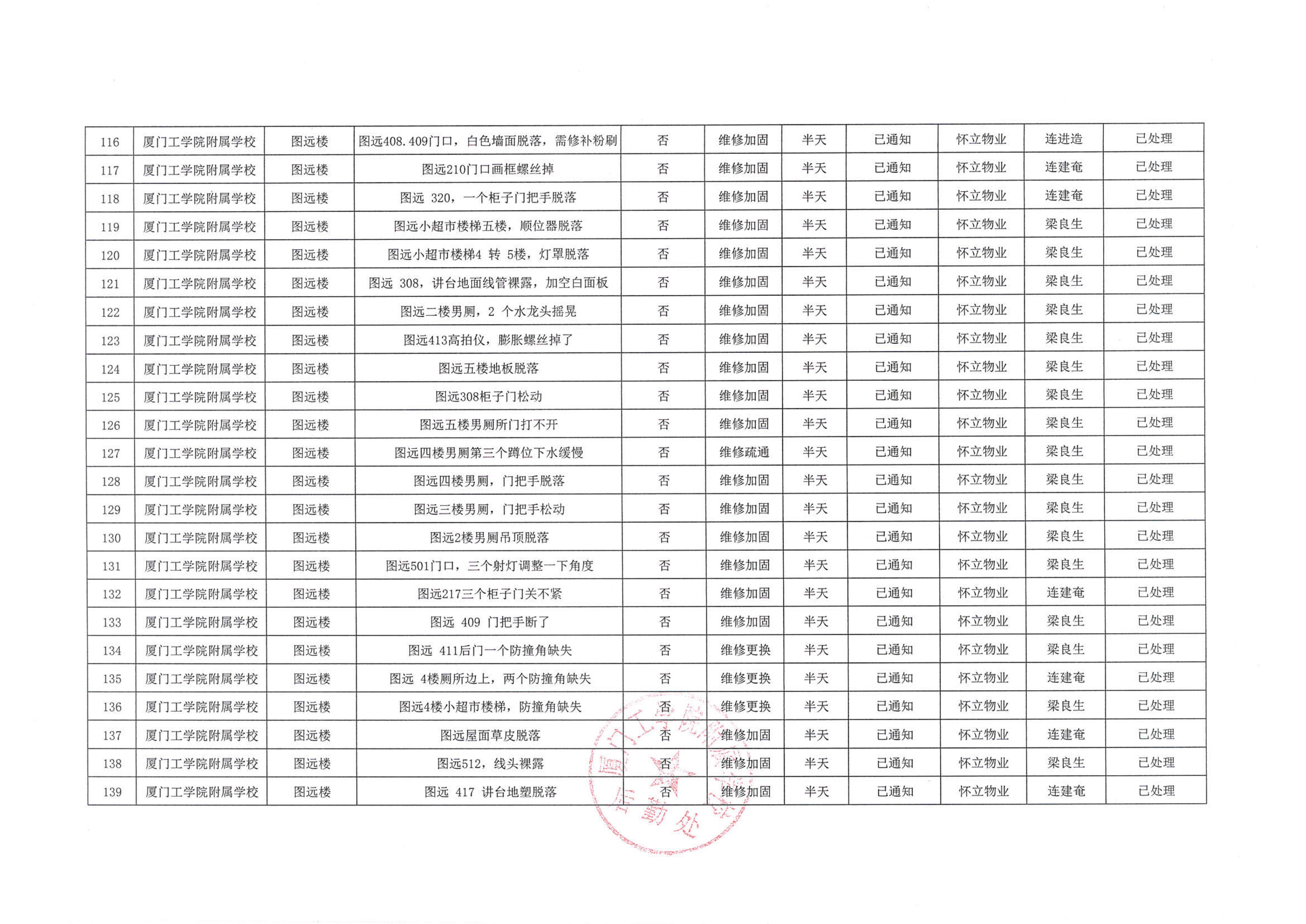 厦门工学院附属学校2025年11月份安全隐患大排查大整治隐患清单…