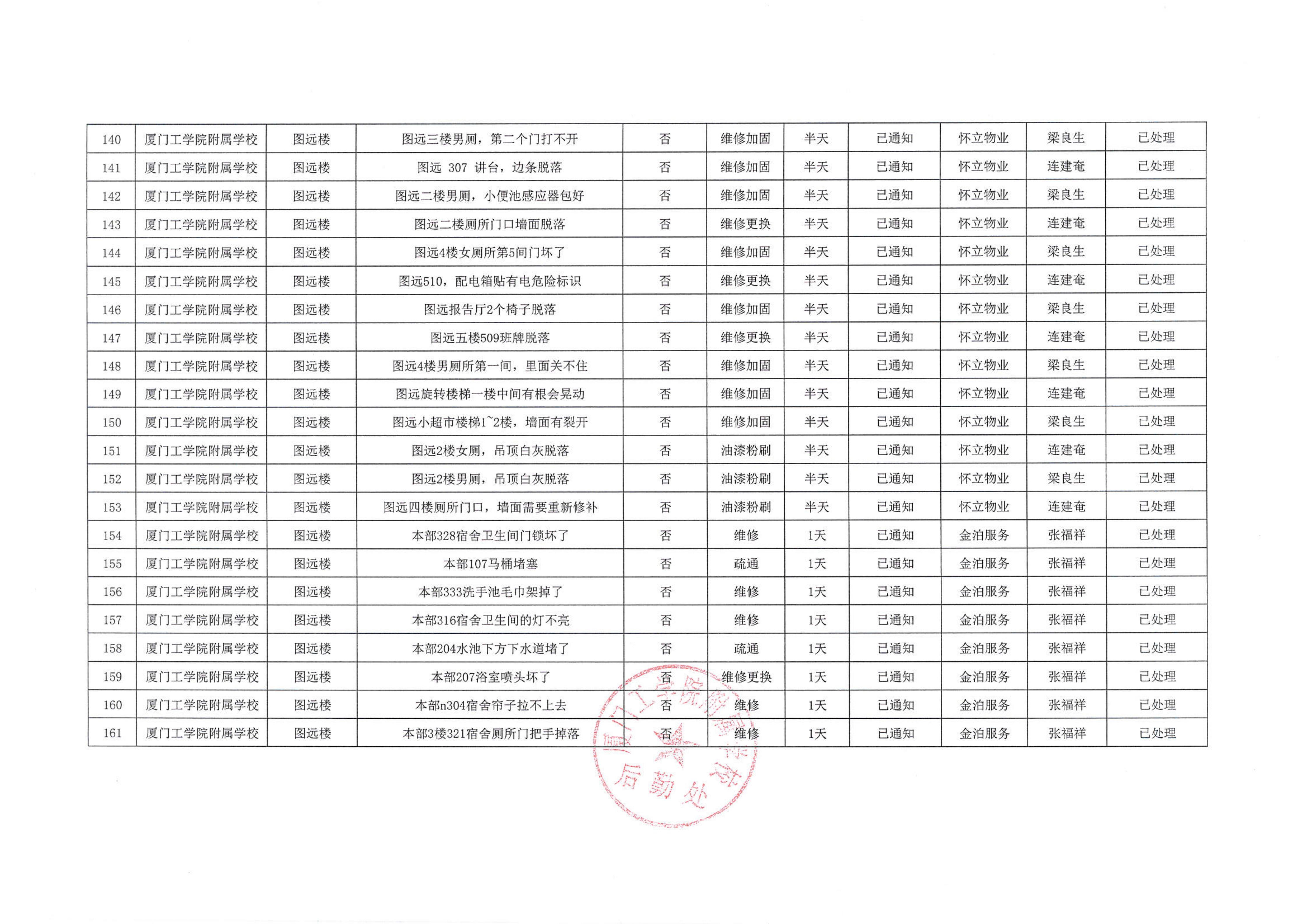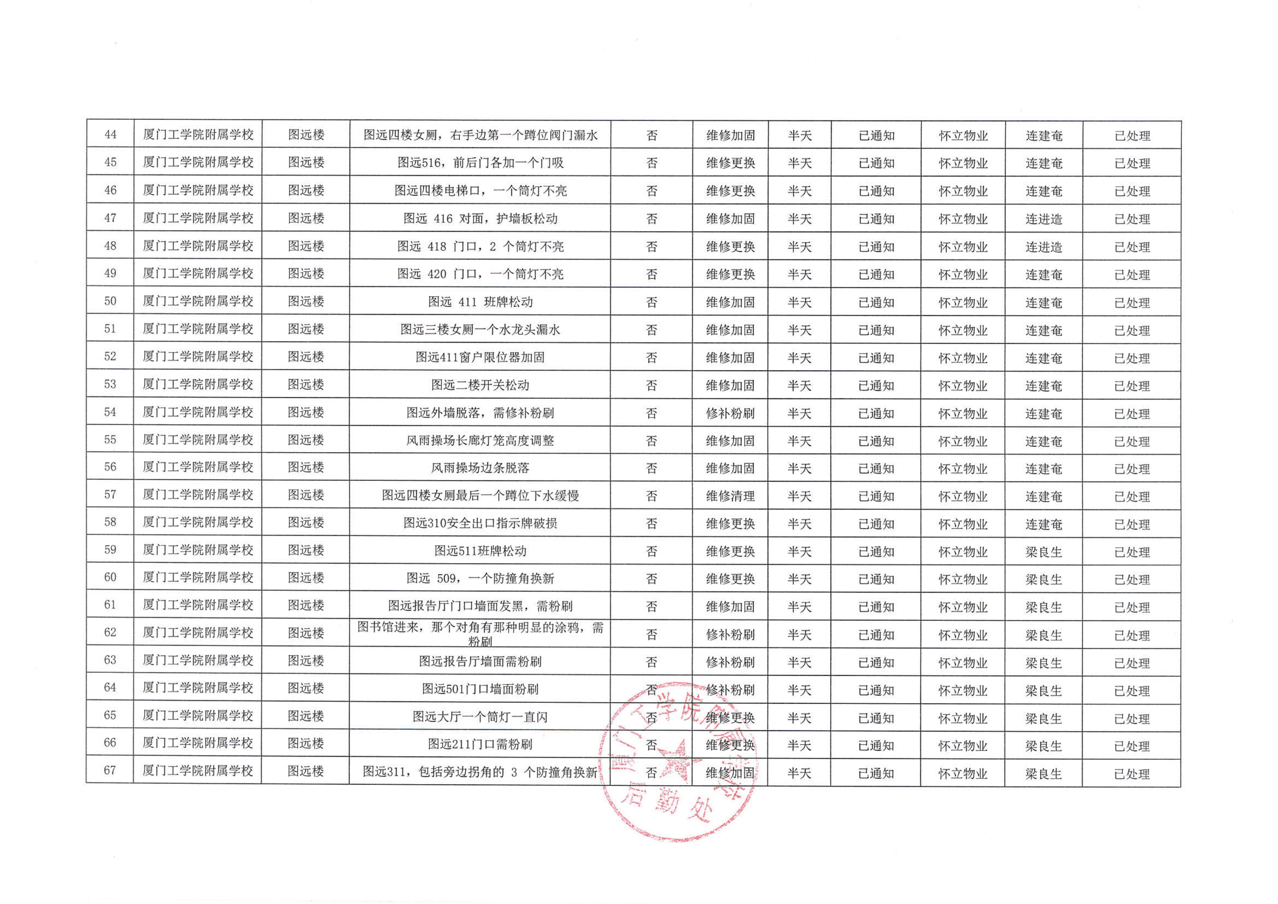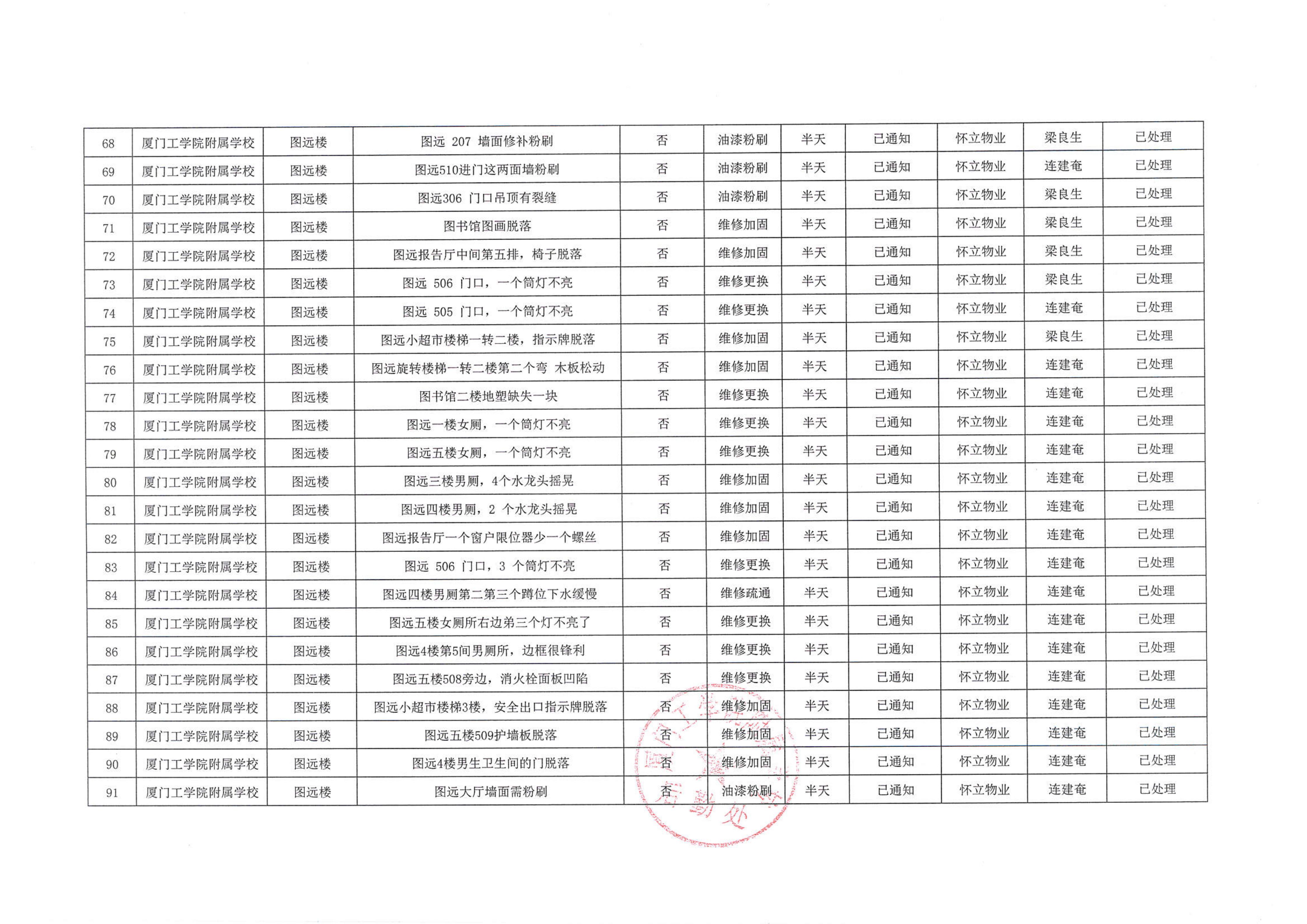 厦门工学院附属学校2025年11月份安全隐患大排查大整治隐患清单…