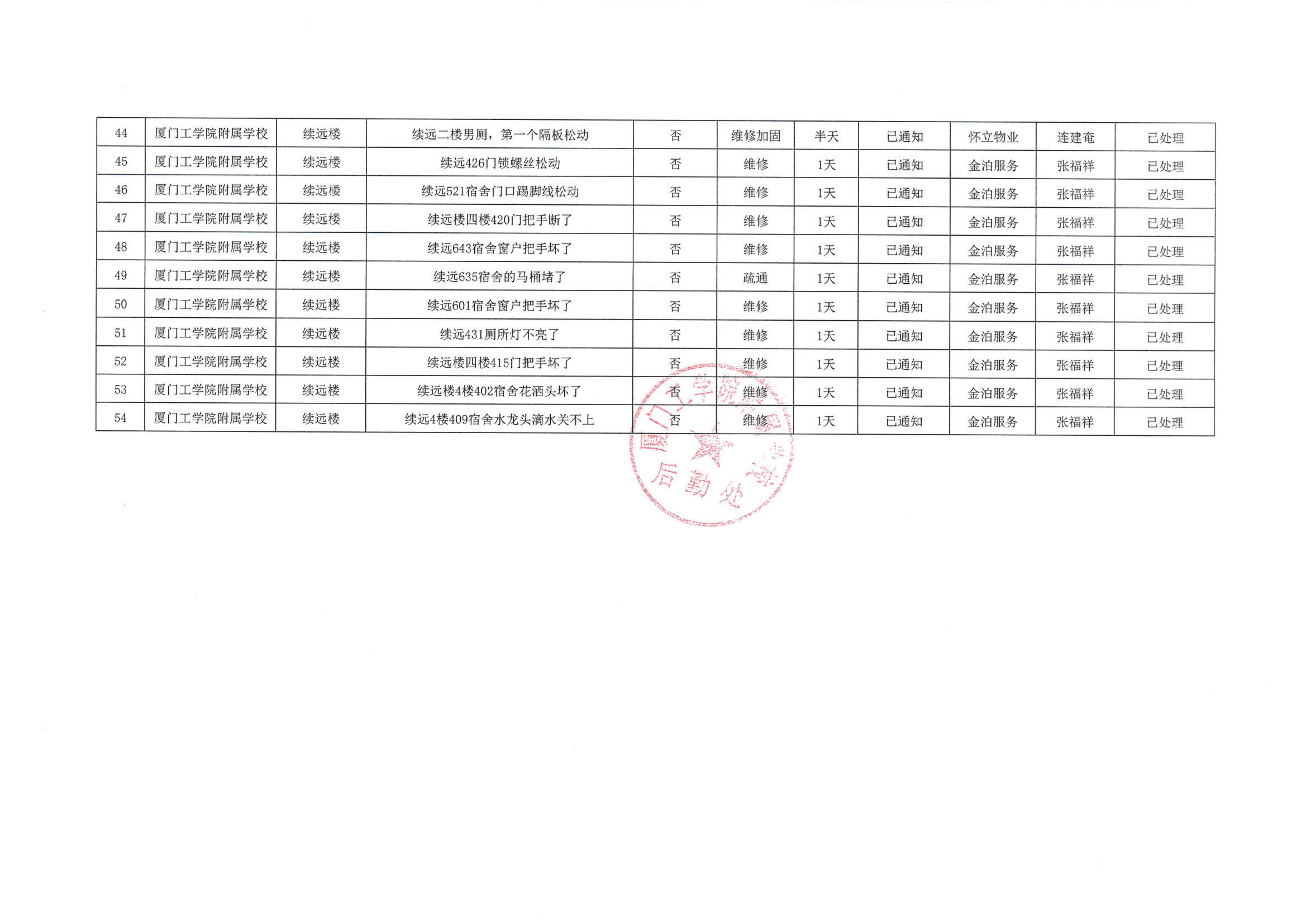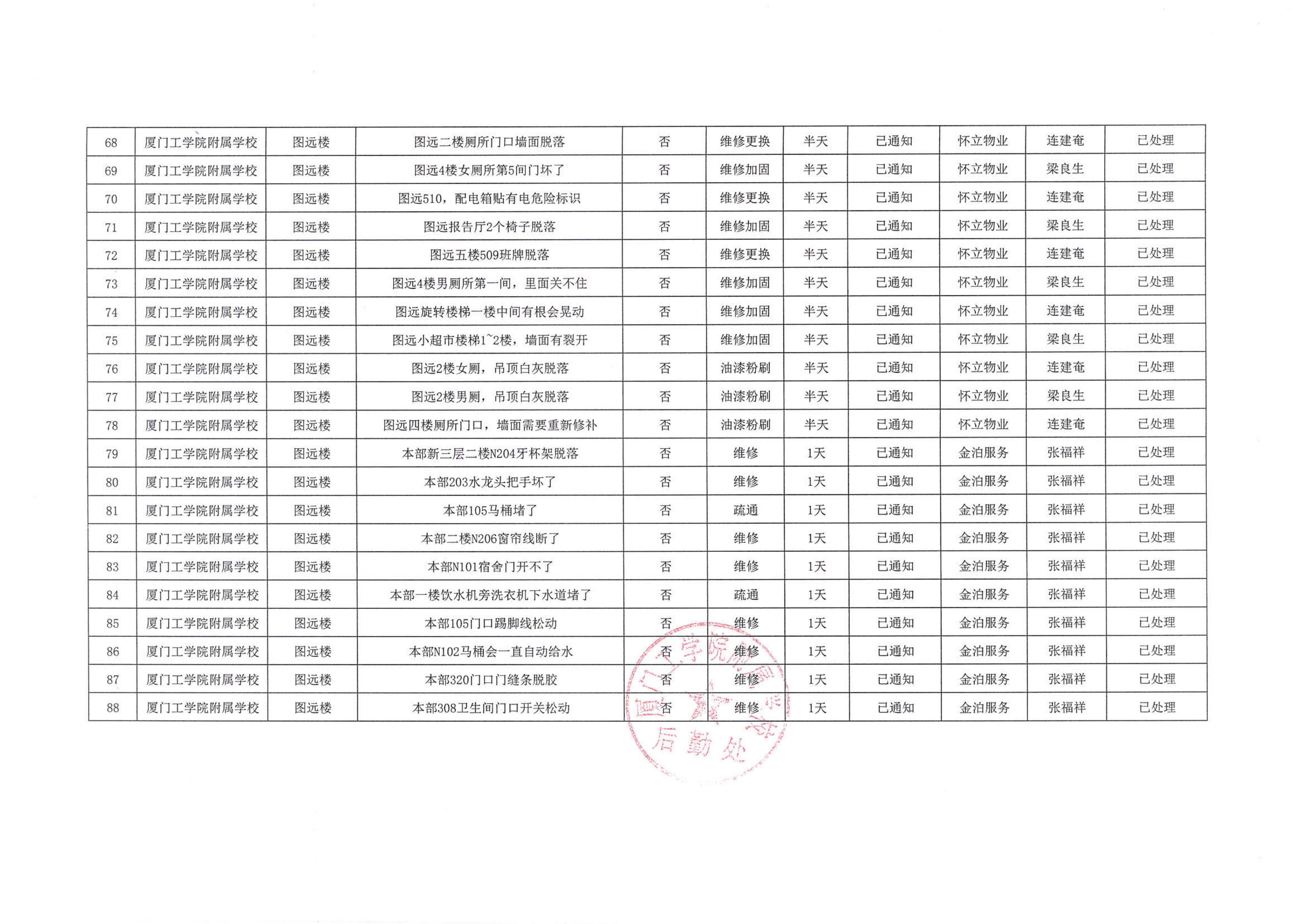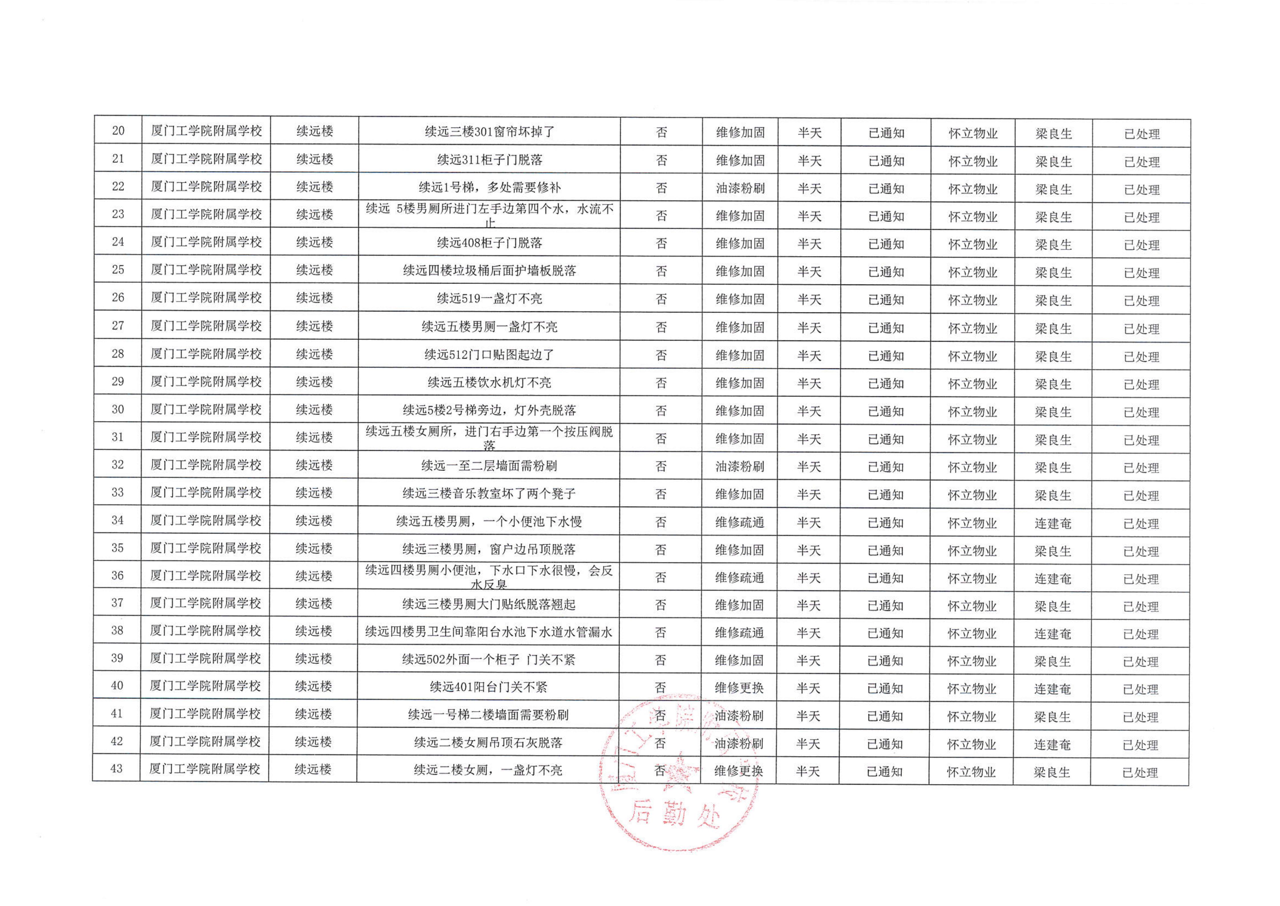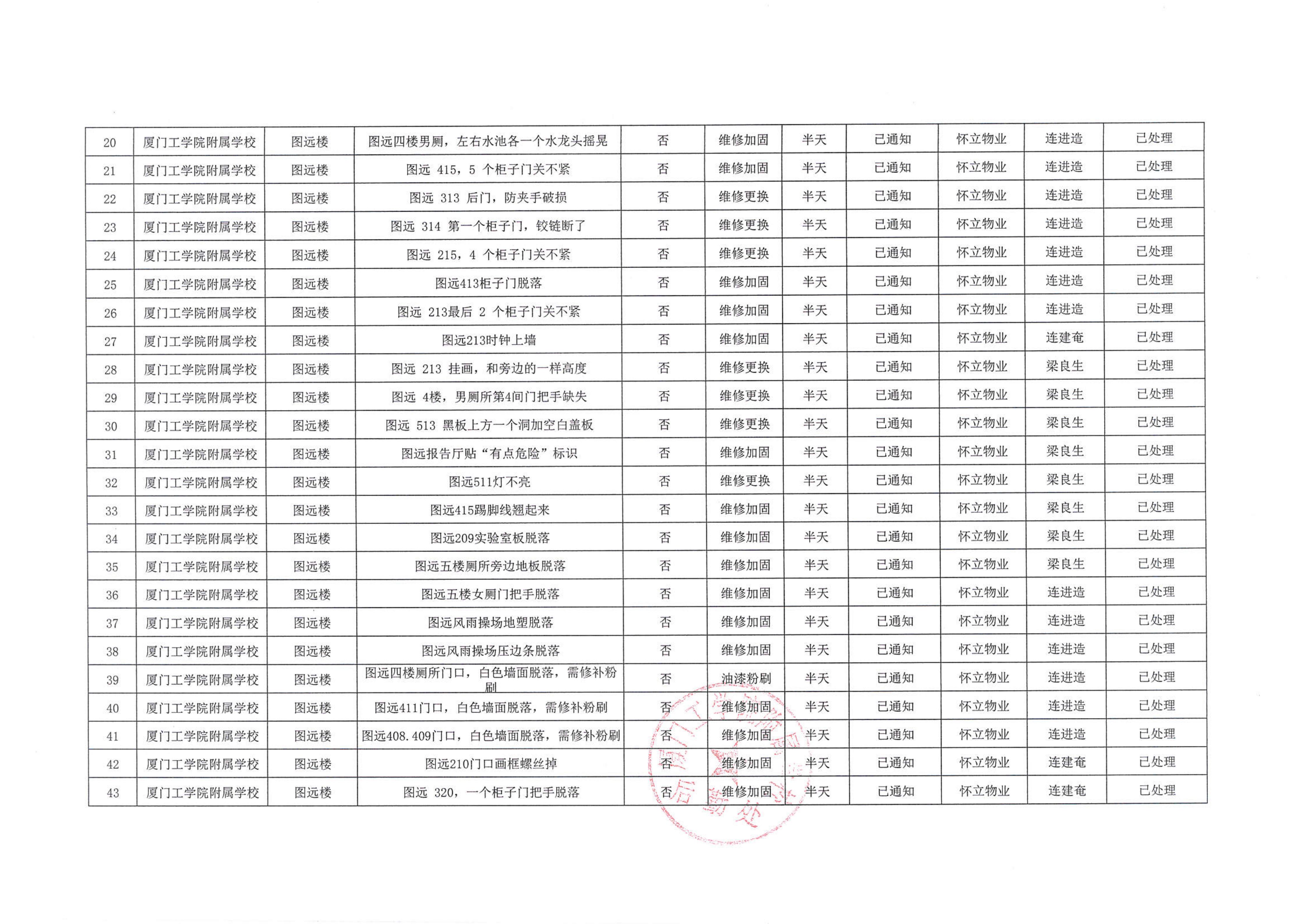 厦门工学院附属学校2025年10月份安全隐患大排查大整治隐患清单…