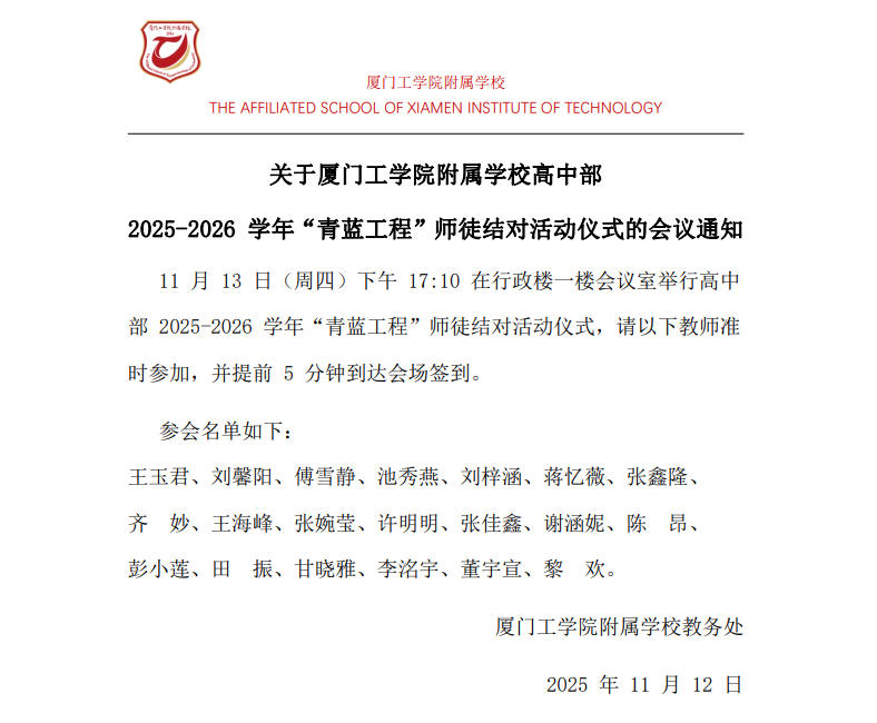 高中部2025-2026学年“青蓝工程”师徒结对活动