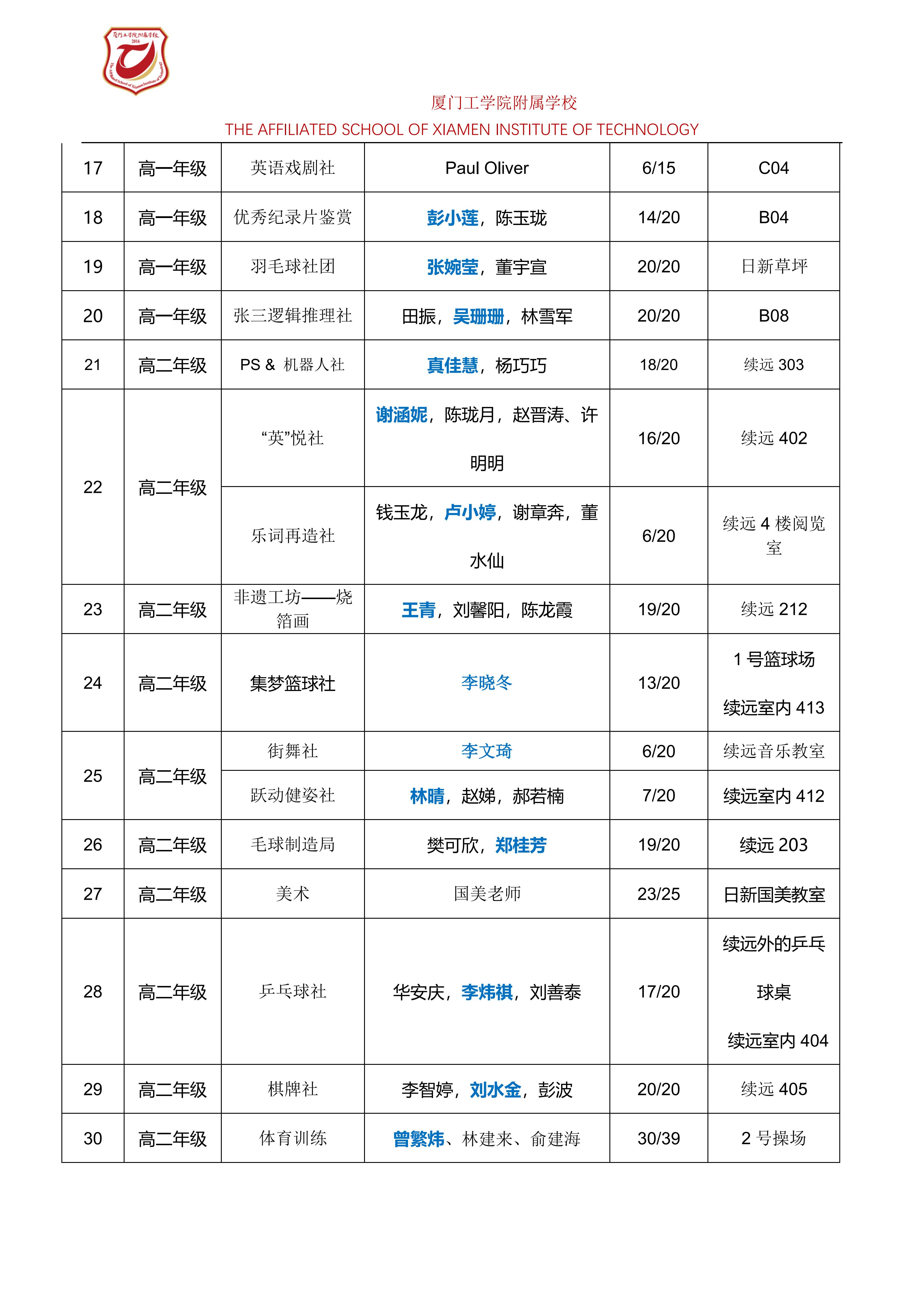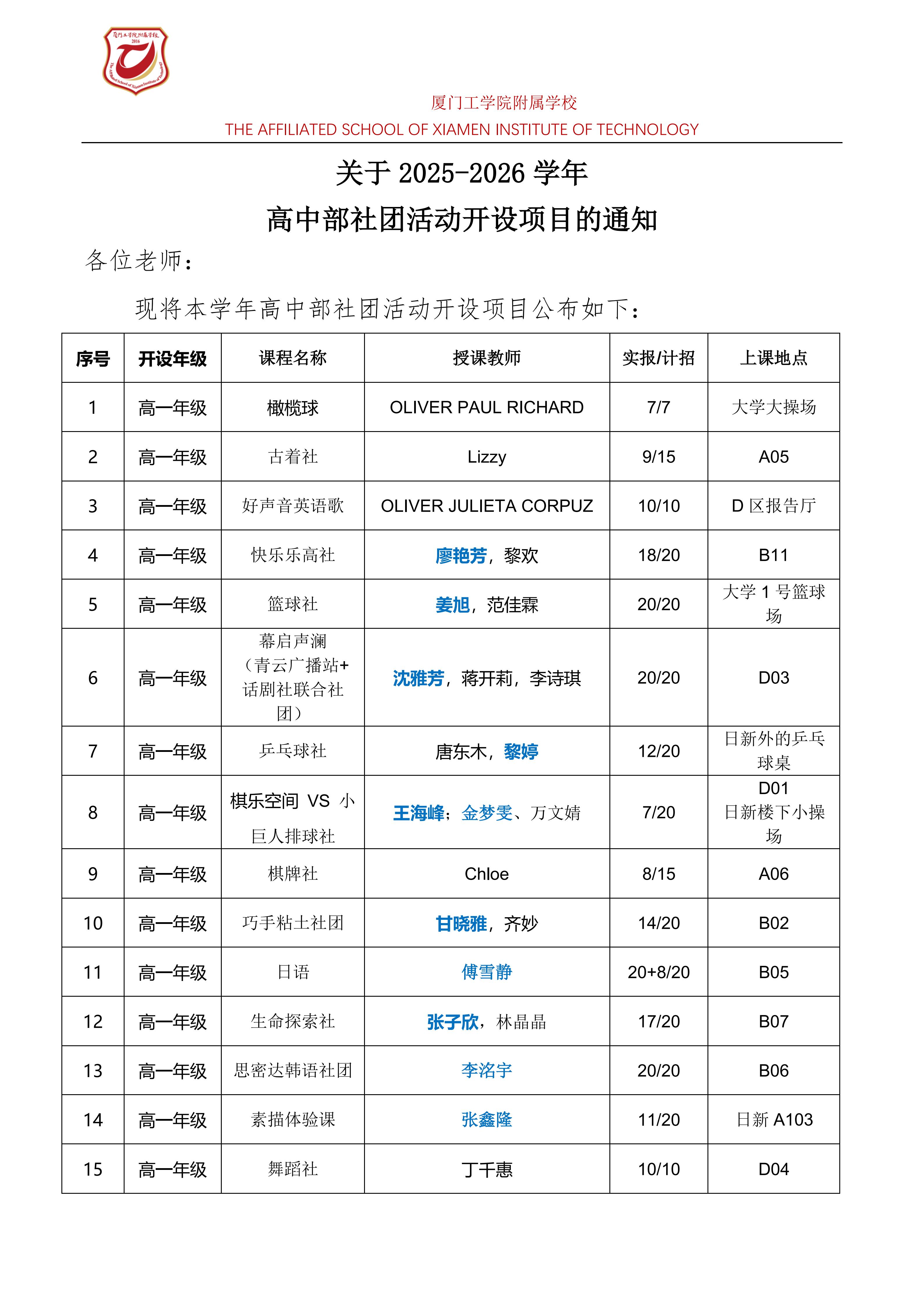 关于2025-2026学年高中部社团活动开设项目的通知