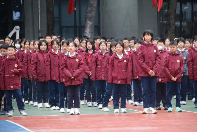 国旗班迈着整齐的步伐出旗,伴随着雄壮的国歌,五星红旗冉冉升起。少先队员行队礼,其余师生行注目礼,浓浓爱国情在校园中升腾,鲜红的国旗为新学期的前行之路点亮方向,凝聚起全体师生敬祖国、赴新程的坚定力量。