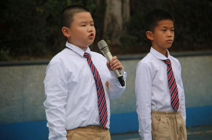 四年级同学带来经典诵读《中华颂》。他们以梦为马、以声传情,用稚嫩却坚定的声音,礼赞山河壮阔,诉说家国情怀,让民族精神如骏马奔腾不息,让爱国爱校的种子在每一位学子心中生根、发芽、成长。